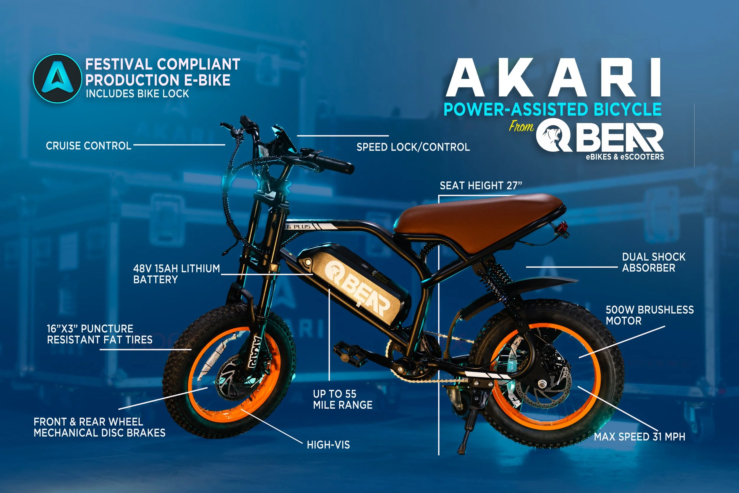 Meet the Akari Power-Assisted Bicycle from QBEAR-perfect for production crews and festival professionals.